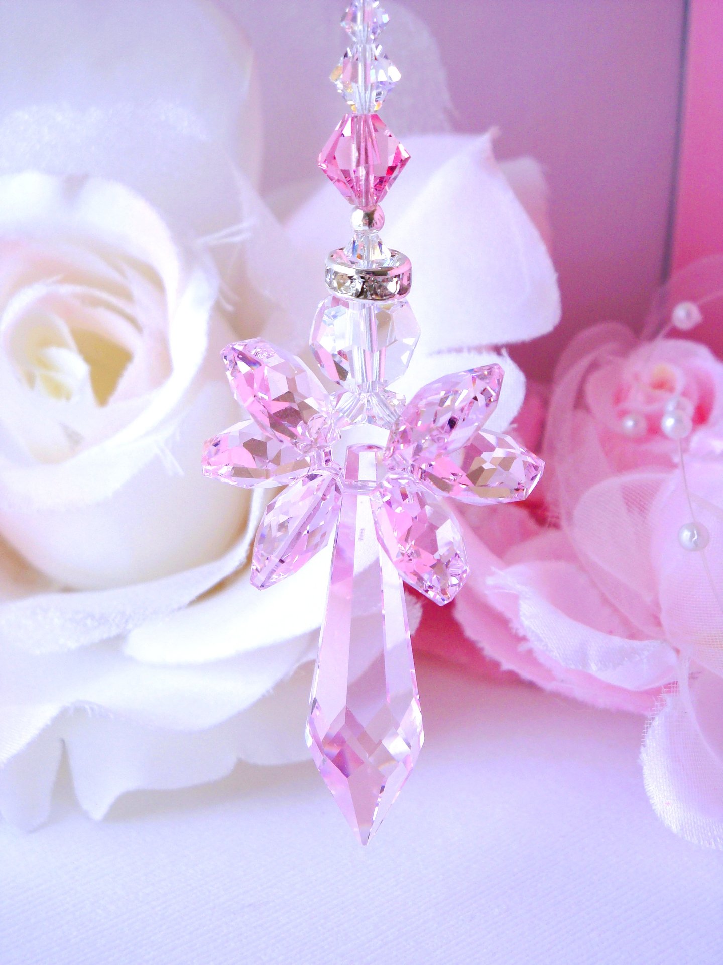 Swarovski is no longer making their Pink Rosalin crystal pendants....I created this beautiful angel using the very last of my supply of the pink pendants.💖